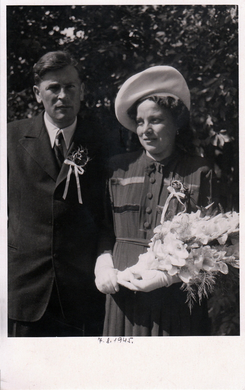 Popis fotografie: svatba Emilie Verostové a Eduarda Chvátala, v pozadí zleva Marie Chvátalová (žena Josefa), Františka Verostová (nevlastní matka Emilie), Josef Chvátal (svědek, bratr Eduarda)