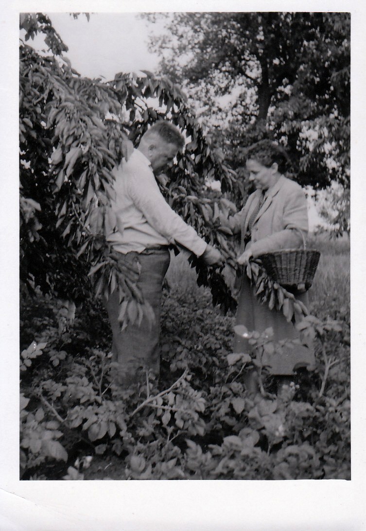 Popis fotografie: Emilie a Eduard Chvátalovi (na třešních)