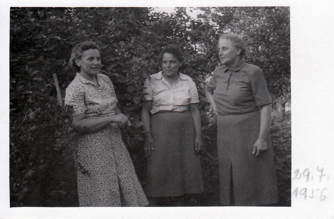 Popis fotografie: tři sestry původně Verostovy: zleva Julie Pipalová (*1911), Emilie Chvátalová (*1908), Marie Vlasáková (*1905)