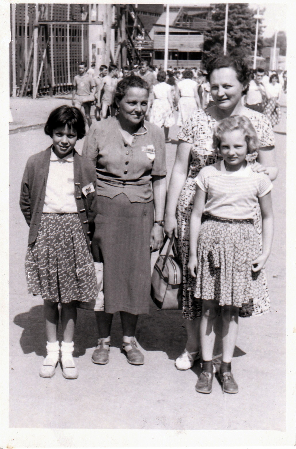 Popis fotografie: zleva ?, Emilie Chvátalová, učitelka Jasna Maštalířová s dcerou