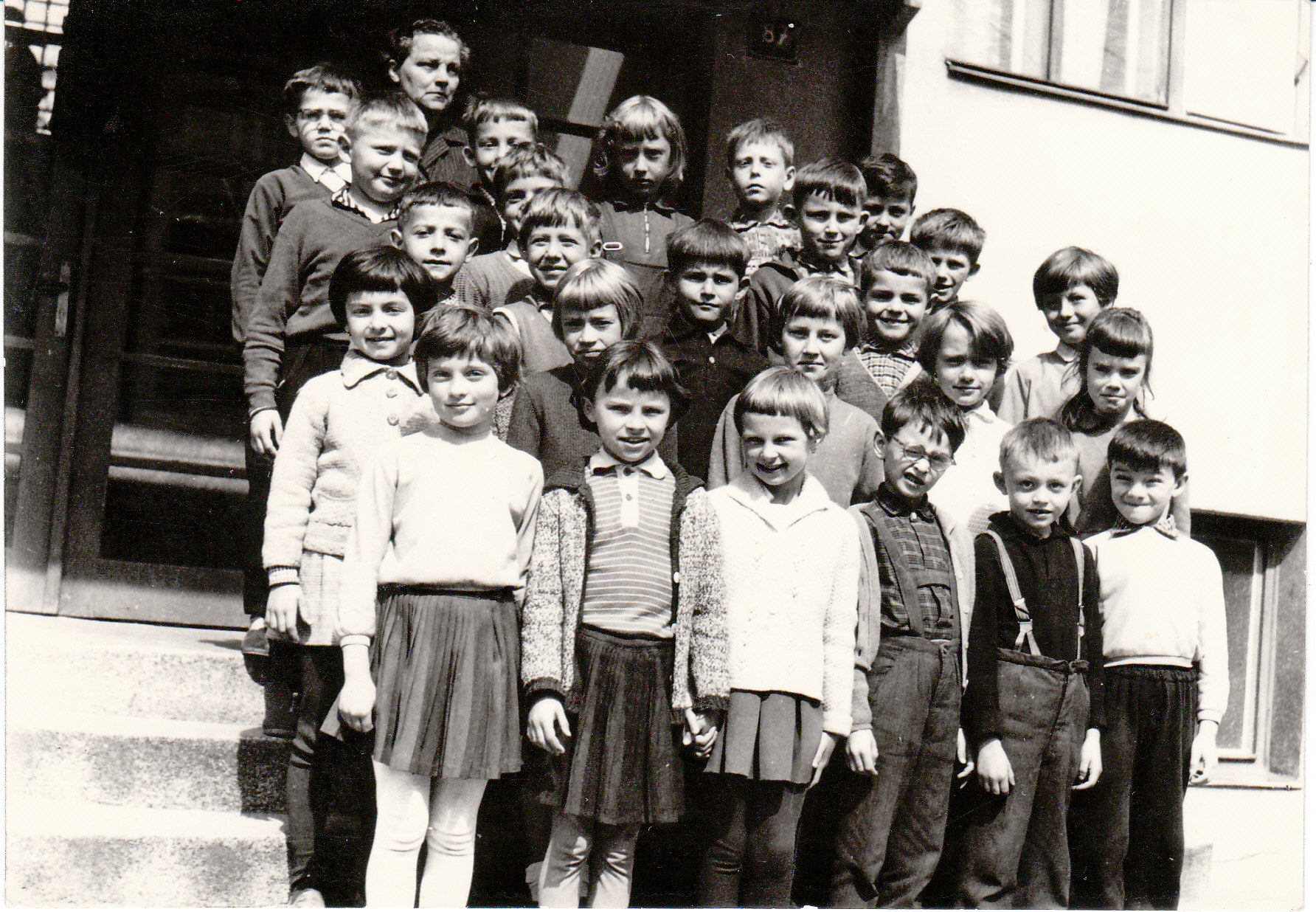 Datum a místo fotografie: červen 1966 Moravský Krumlov, schody před základní školou