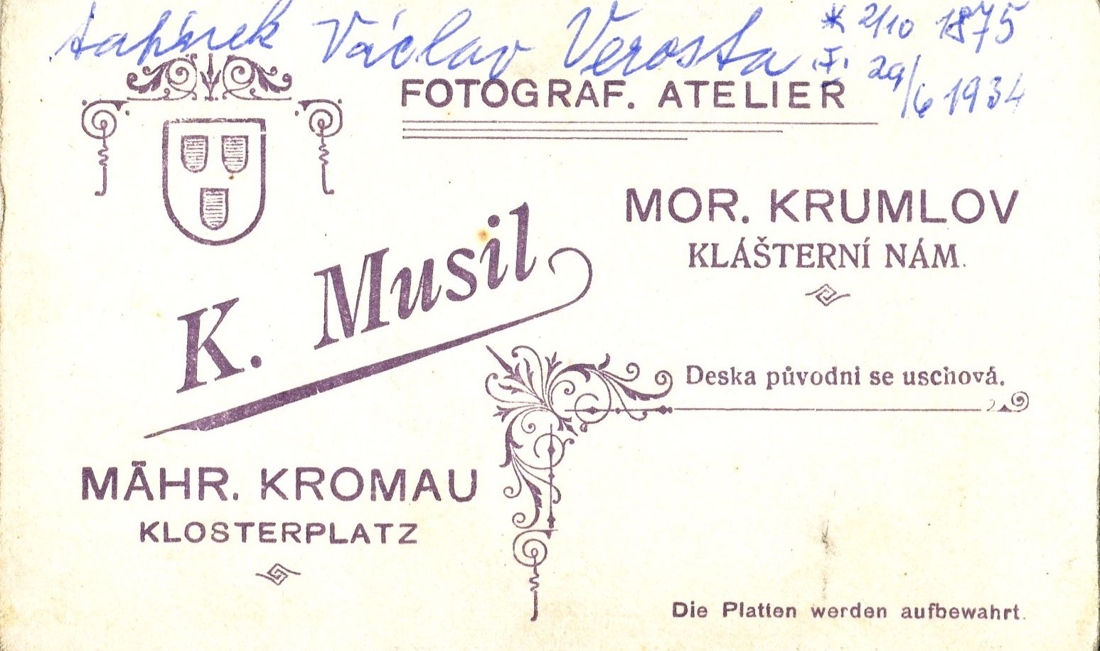 Popis fotografie: Václav Verosta (*1875)