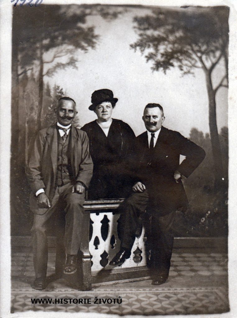 Popis fotografie: zleva Václav Verosta (*1875) z Moravského Krumlova, Ewa a Franz (*1874) Werosta z Vídně (bratr Václava)