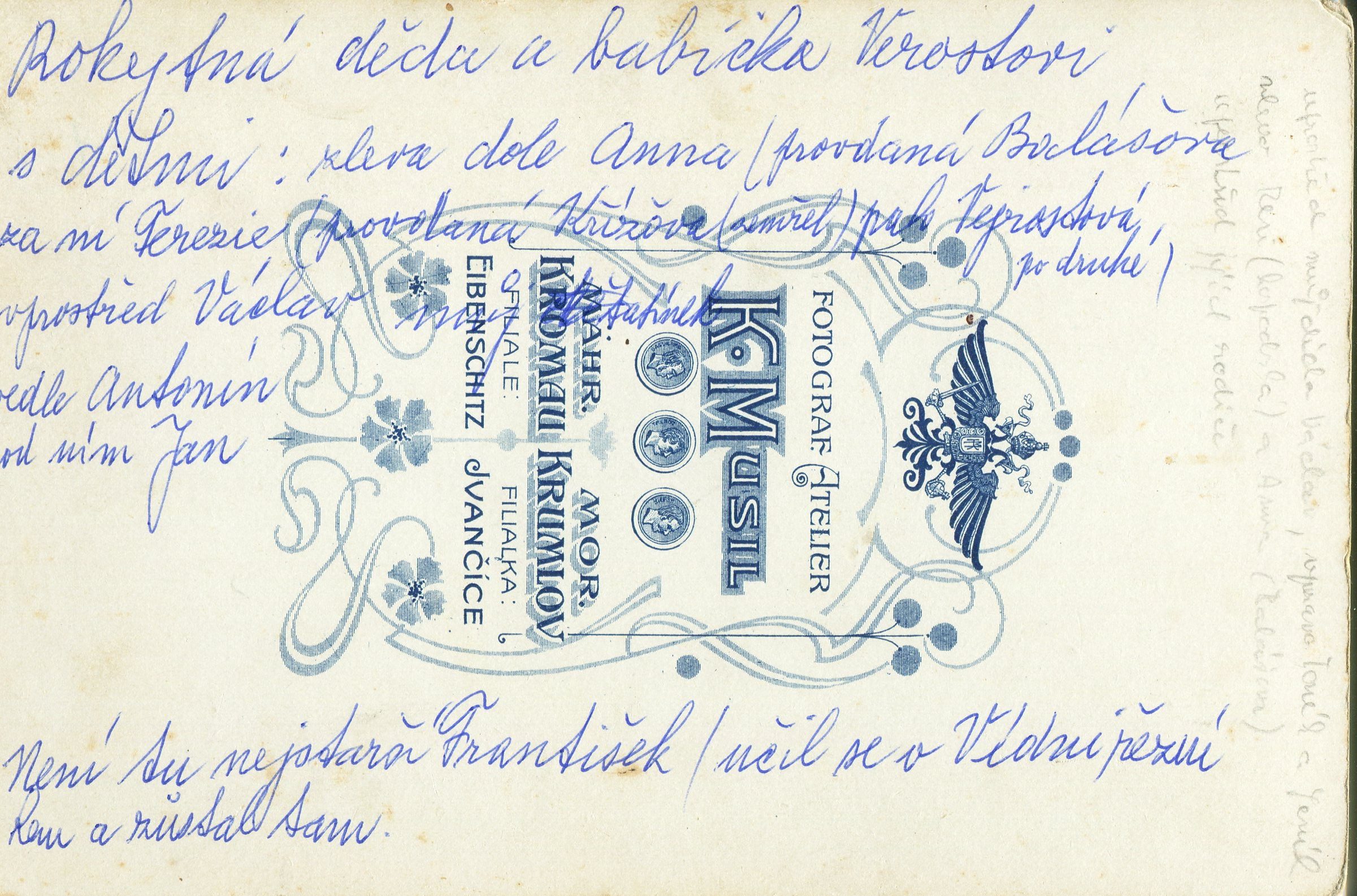 Popis fotografie: nejstarší fotografie Václava Verosty (*1875)